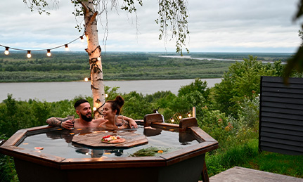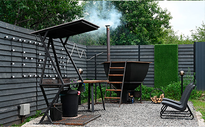 Обязательно приезжайте в Sky Terra, чтобы испытать на себе непередаваемые ощущения от купания в банном чане на открытом воздухе! Вы получите ни с чем не сравнимое удовольствие от теплой воды, дымящейся в окружающем вас прохладном воздухе!