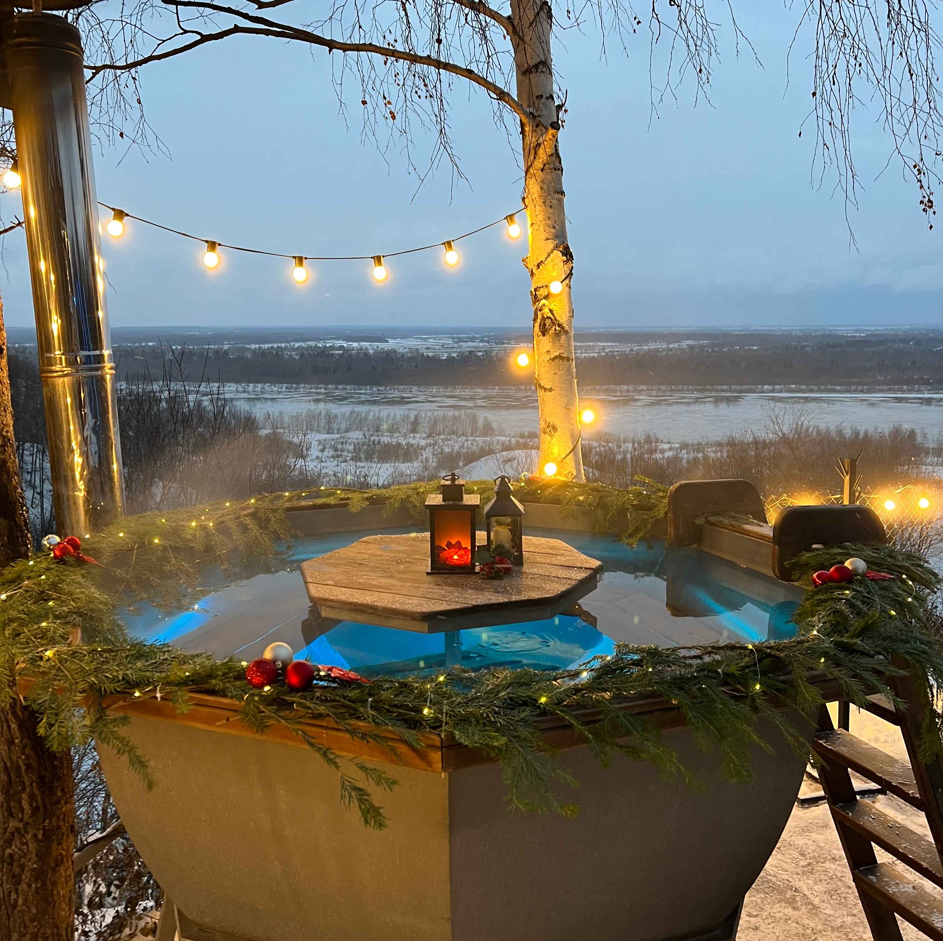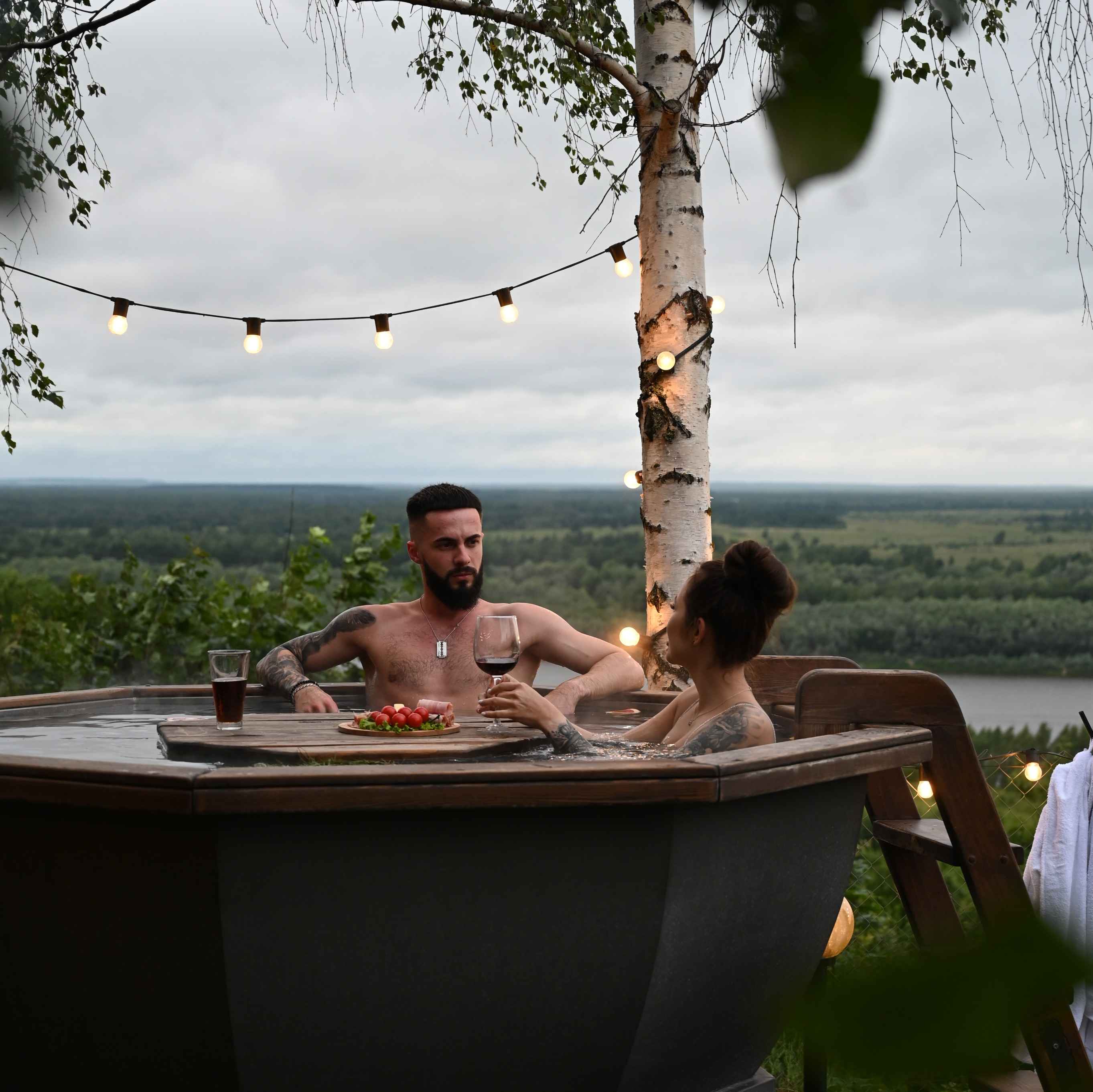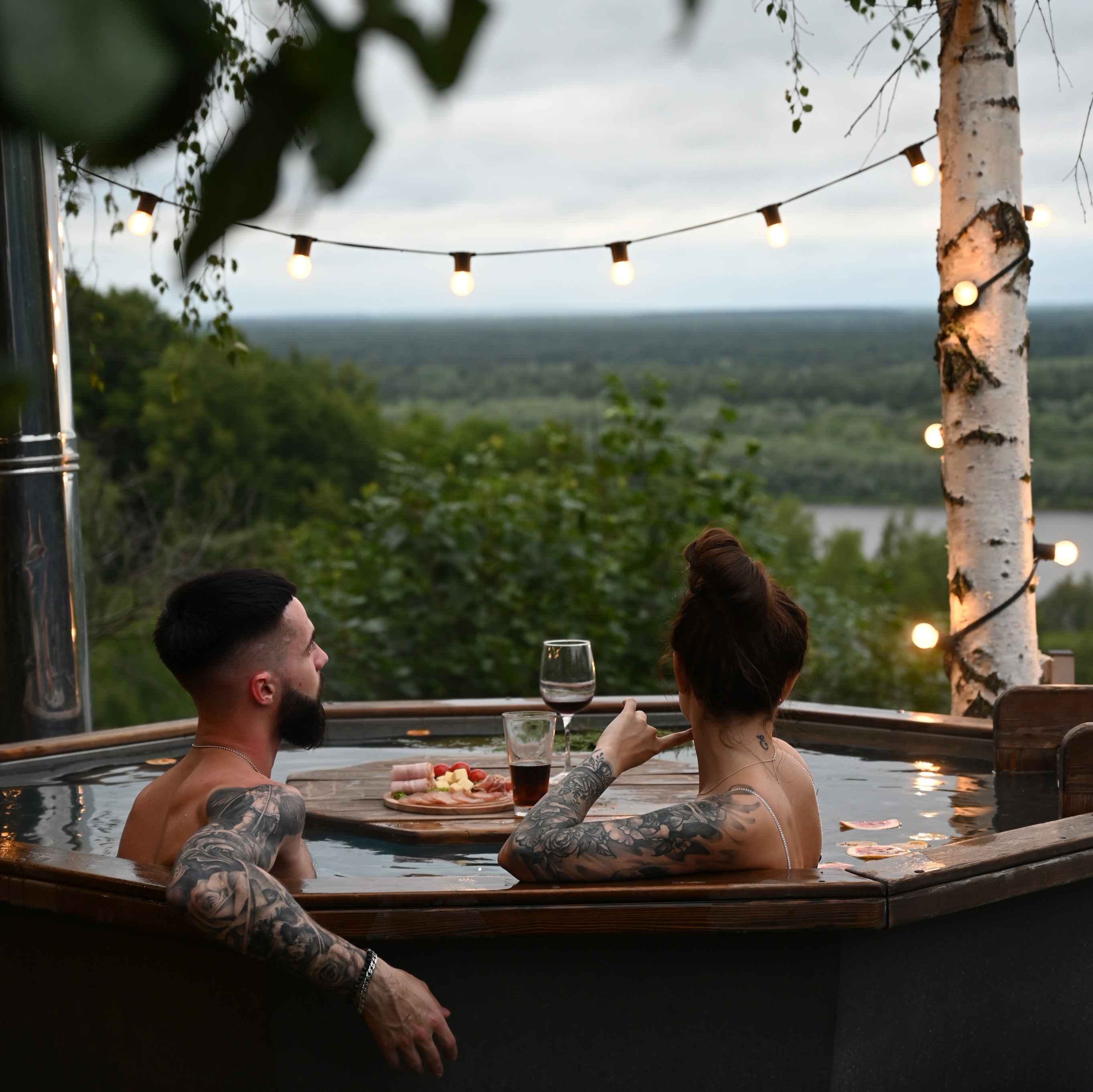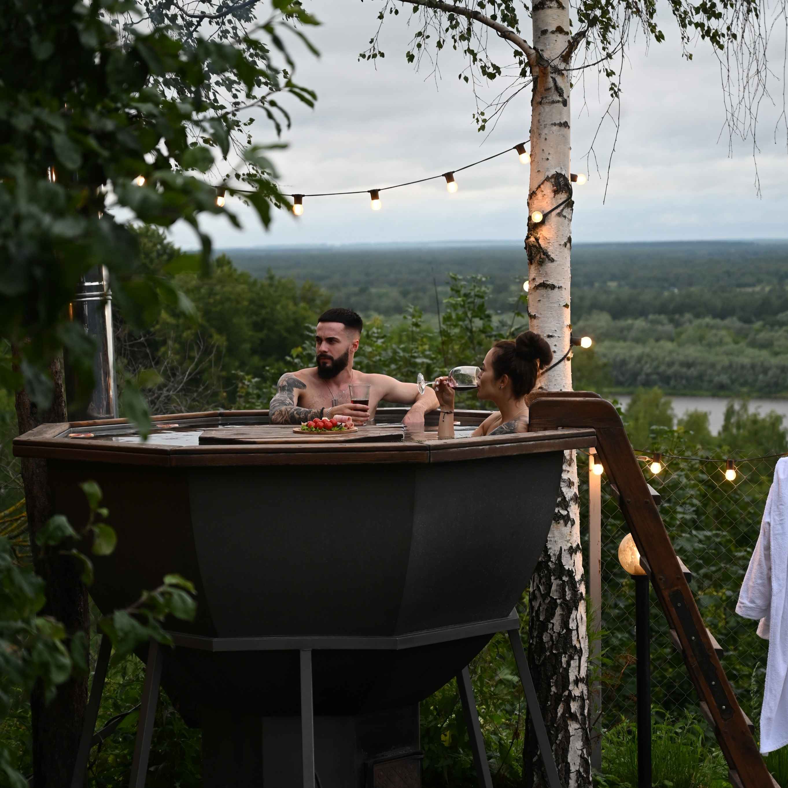 Обязательно приезжайте в Sky Terra, чтобы испытать на себе непередаваемые ощущения от купания в банном чане на открытом воздухе! Вы получите ни с чем не сравнимое удовольствие от теплой воды, дымящейся в окружающем вас прохладном воздухе!