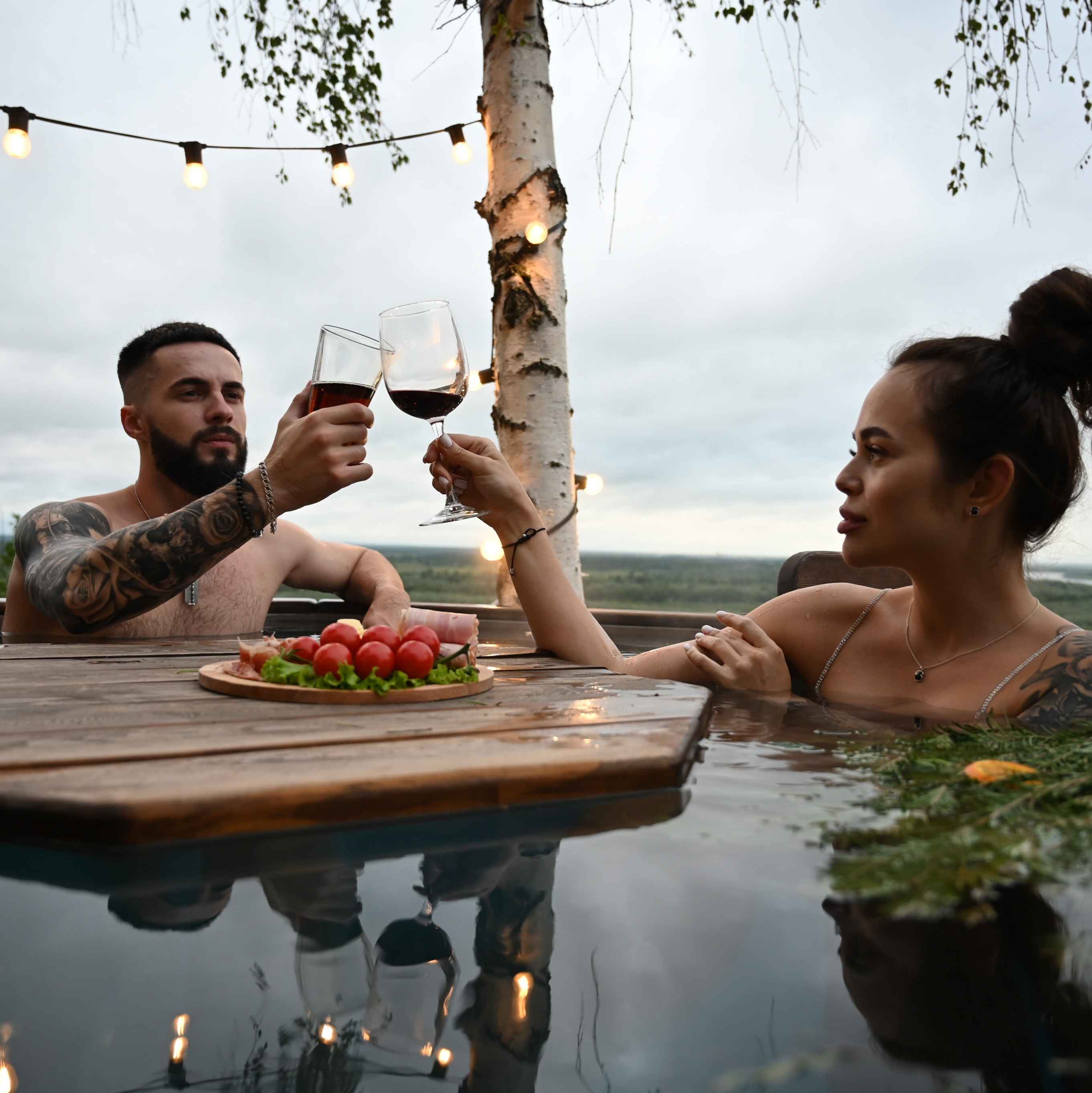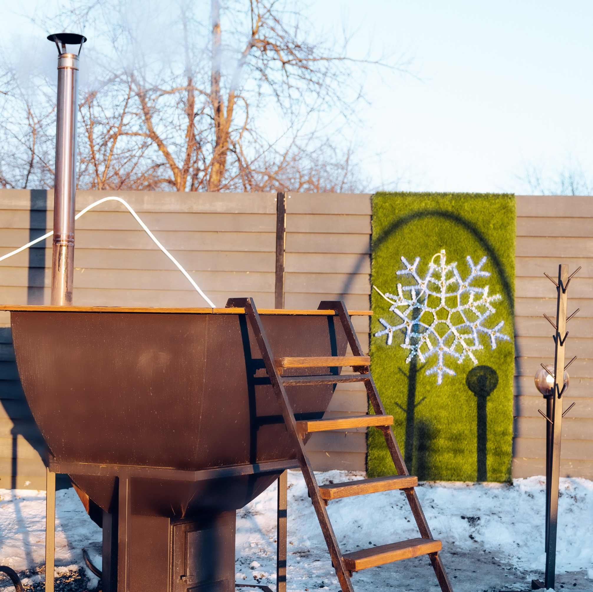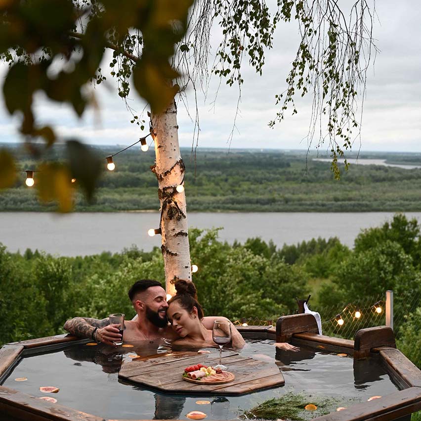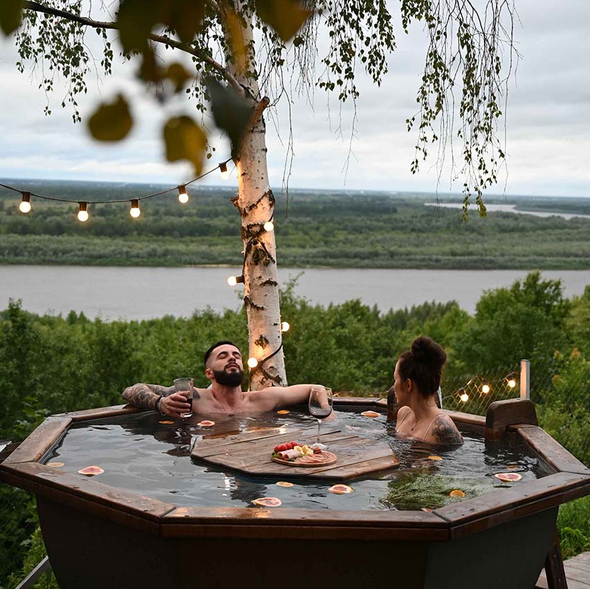 Обязательно приезжайте в Sky Terra, чтобы испытать на себе непередаваемые ощущения от купания в банном чане на открытом воздухе! Вы получите ни с чем не сравнимое удовольствие от теплой воды, дымящейся в окружающем вас прохладном воздухе!